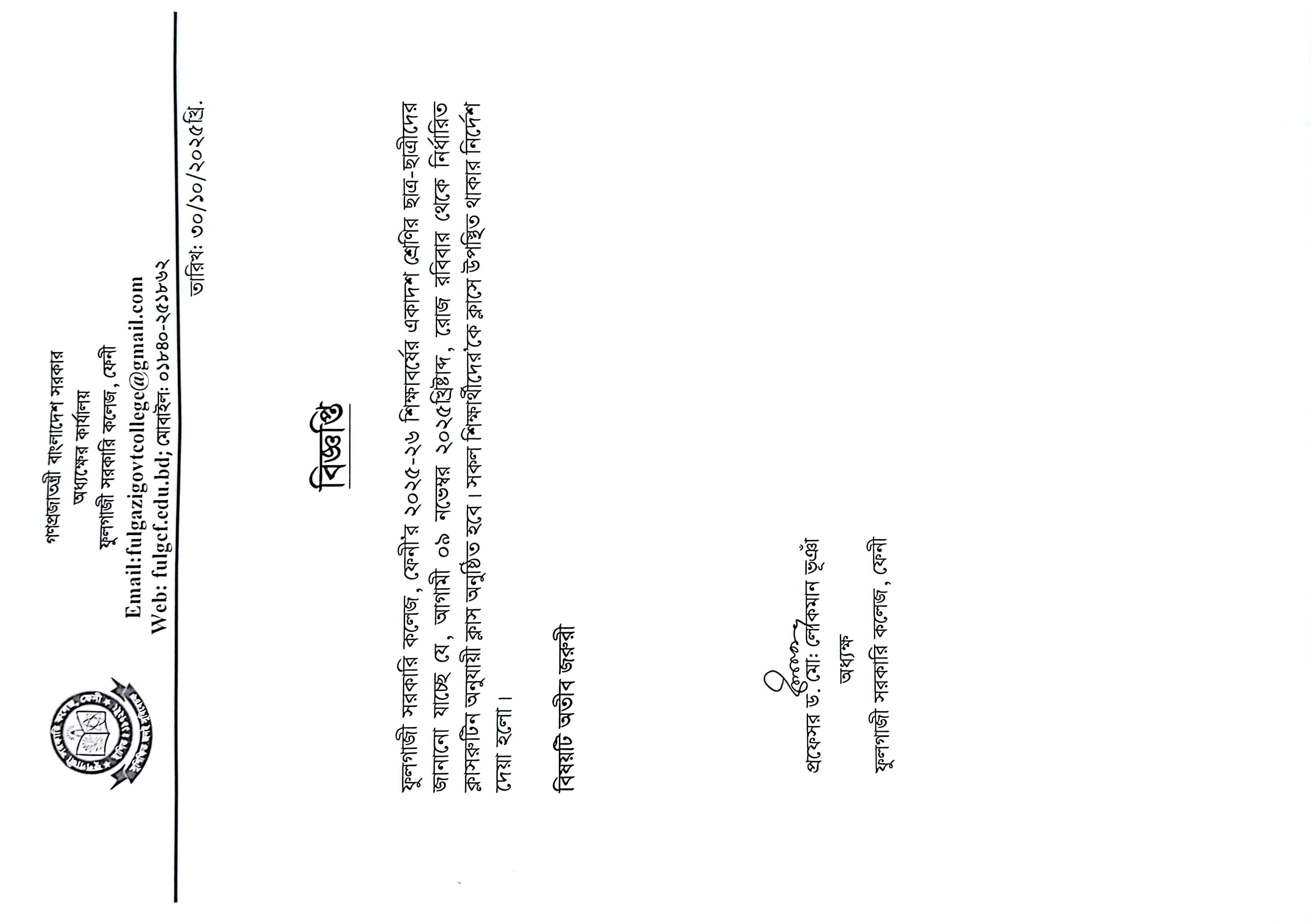২০২৫-২০২৬ শিক্ষাবর্ষে একাদশ শ্রেণিতে শ্রেণি কার্ষক্রম সংক্রান্ত নোটিশ।
